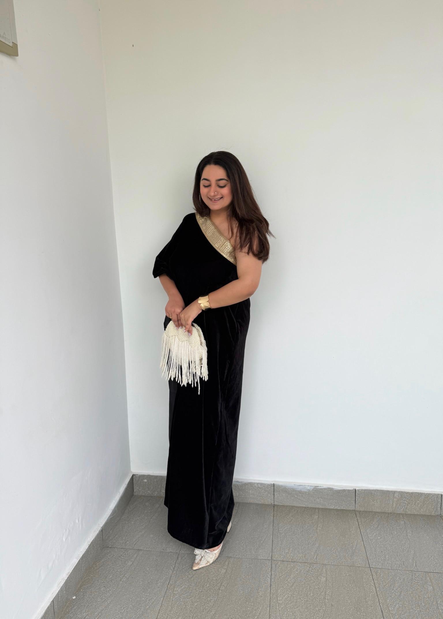 Step into luxury with our Luxe Velvet One-Shoulder Kaftan, a timeless piece crafted for women who love effortless glamour. Made from premium velvet, this kaftan offers a rich, plush feel with a natural sheen that elevates your entire look.